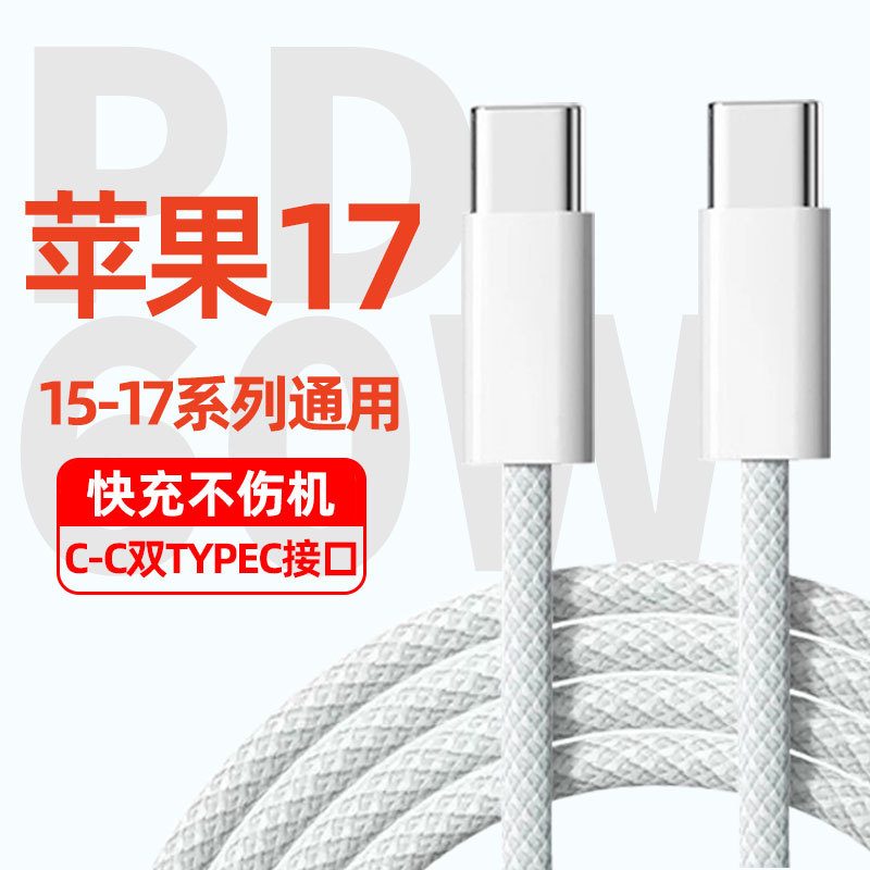 适用苹果17数据线apple15快充线PD60W充电线高密度编织充电器专用