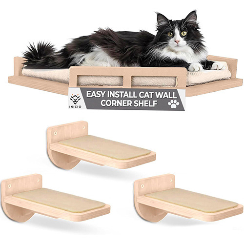 木製猫用爪とぎ、猫用壁掛けキャットタワー、ペット用壁掛け休憩場所、給餌台、壁掛けジャンプ台、猫用寝板