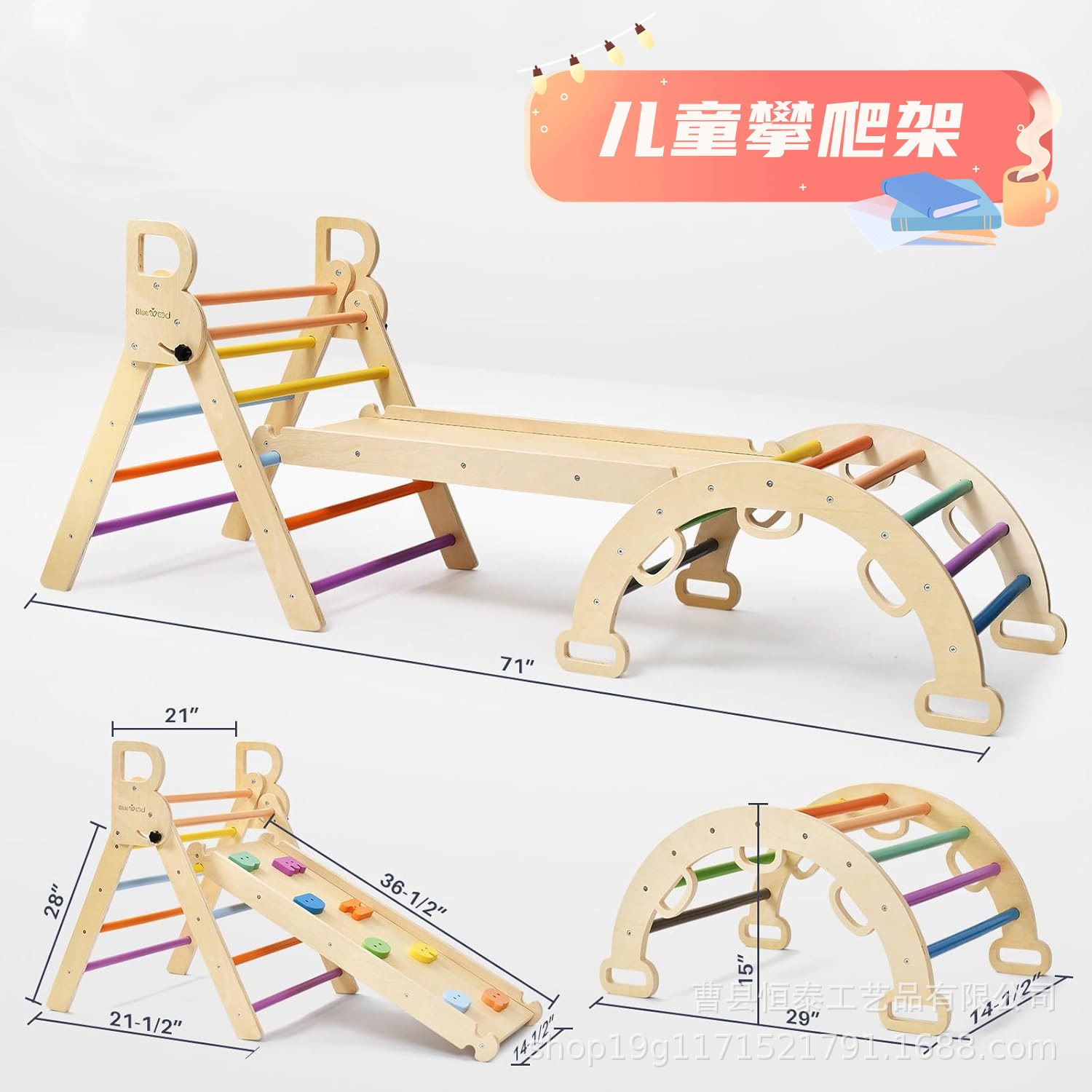 跨境木质儿童攀爬架折叠蒙特梭利攀岩平衡板摇摇椅宝宝感统训练架