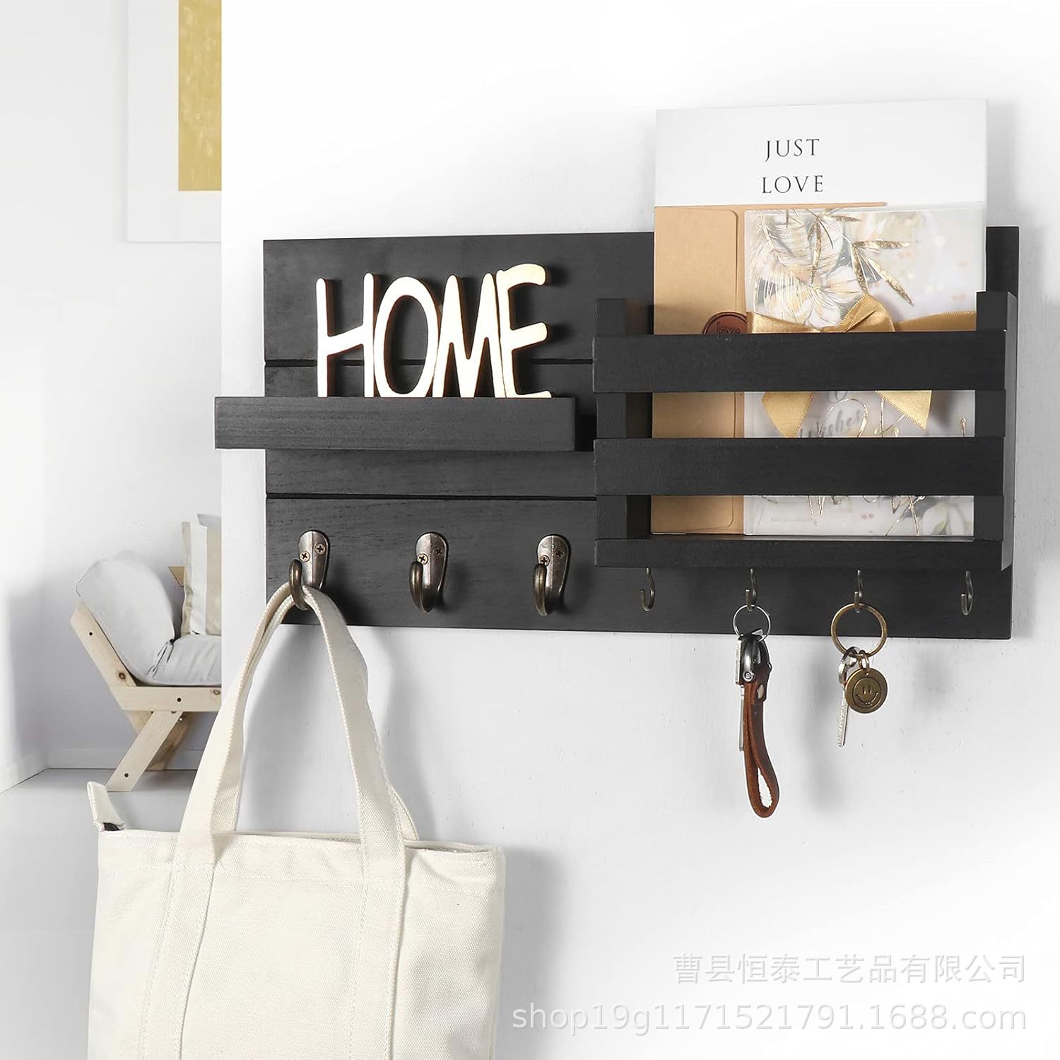 クロスボーダー木製キーラック壁掛け棚玄関バッグラック玄関無垢材クリエイティブフックキーストレージラック