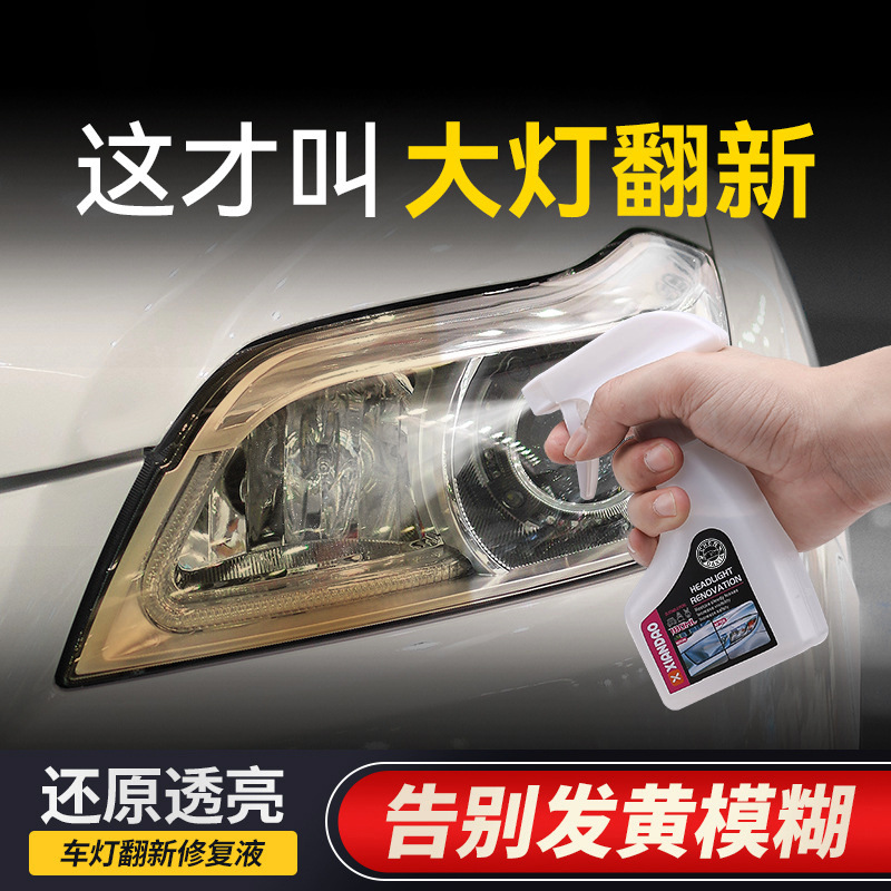 メーカー製 車のヘッドライト再生・修復液 車のライトカバーの黄ばみ・青氷状の変色を修復する剤 研磨不要 輸出用タイプ 明るさを高める