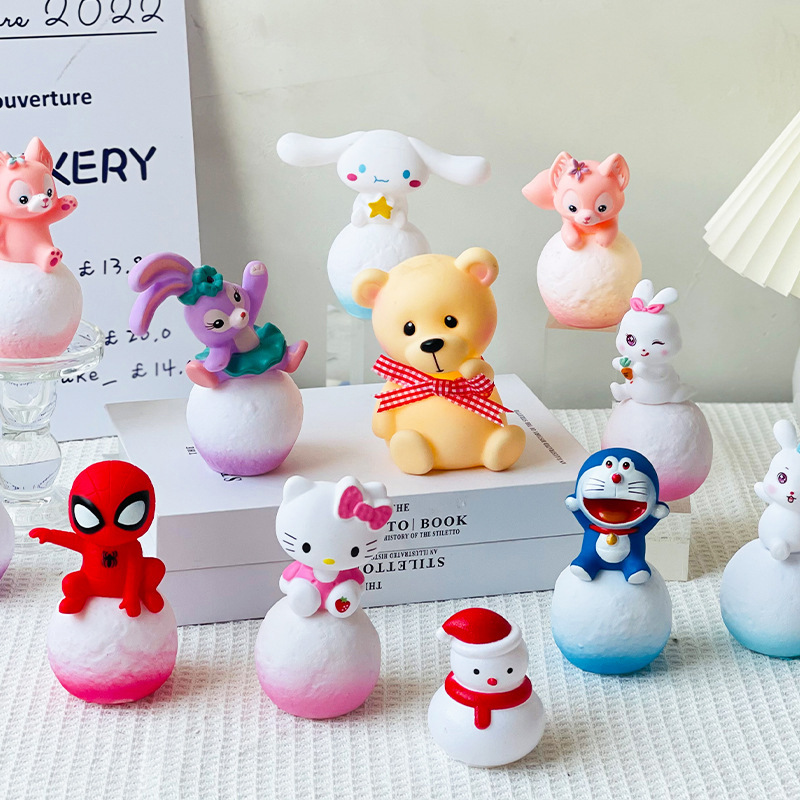ネットの赤い子供の誕生日ケーキの装飾の置物の漫画の宇宙飛行士のkt猫の熊のブタの月の発光灯のプラグイン