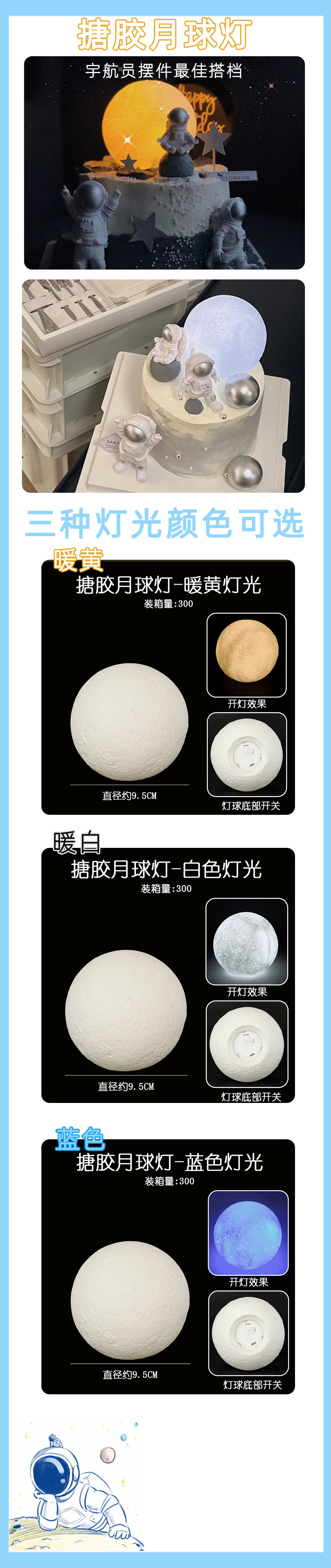 カラー エナメル月球灯-暖白,エナメル月球灯-暖黄,エナメル月球灯-青