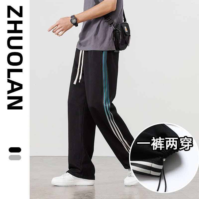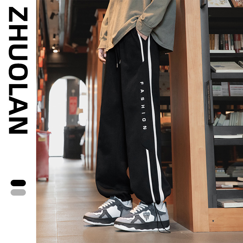 大きいサイズの運動のズボンの男性の2024新型の男子学生の秋のゆったりしている広足のプラスの大きいサイズのカジュアルなズボンの太った人はやせているズボンを現します。