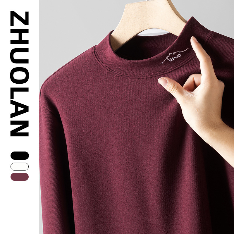 重いポンドの徳の絨毛の半高襟の底のシャツの男性の秋冬のタイプのデブは大きいサイズをプラスして自ら発熱して保温して長袖のtシャツを厚くします。