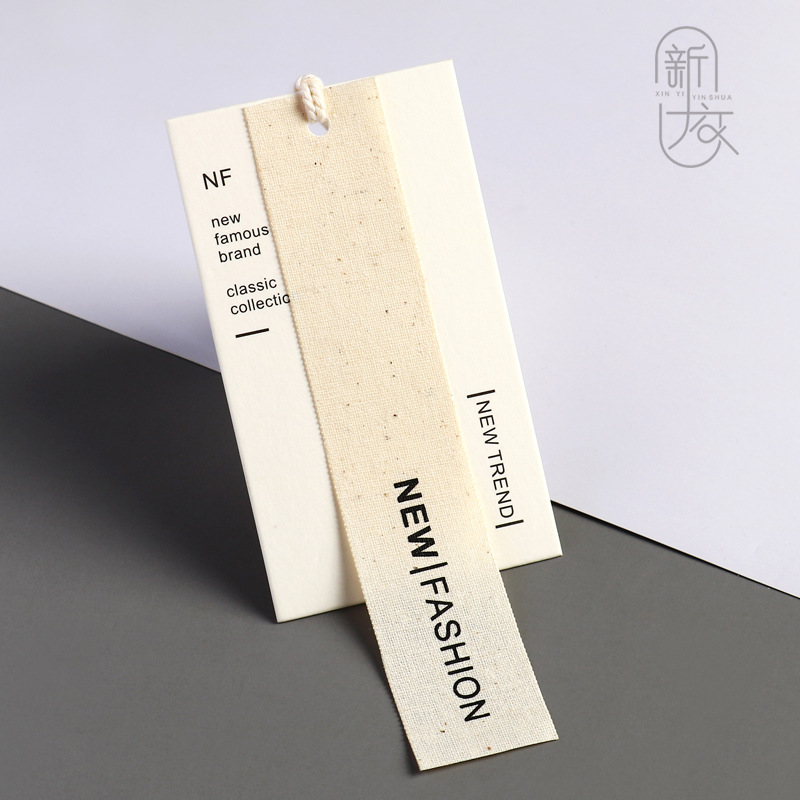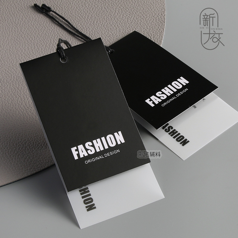 高級服の吊り札は二つ折りのラベルを作って、服の合格証をカスタマイズします。