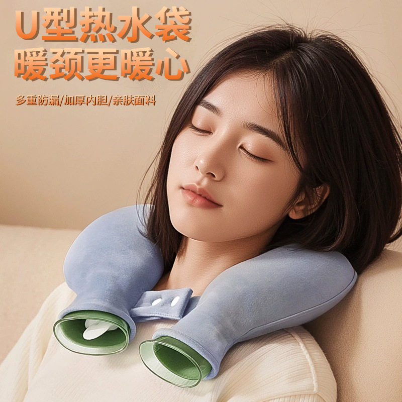 注水式U型颈肩热水袋脖肩保暖加厚热敷暖水袋热敷围脖冷热两用暖