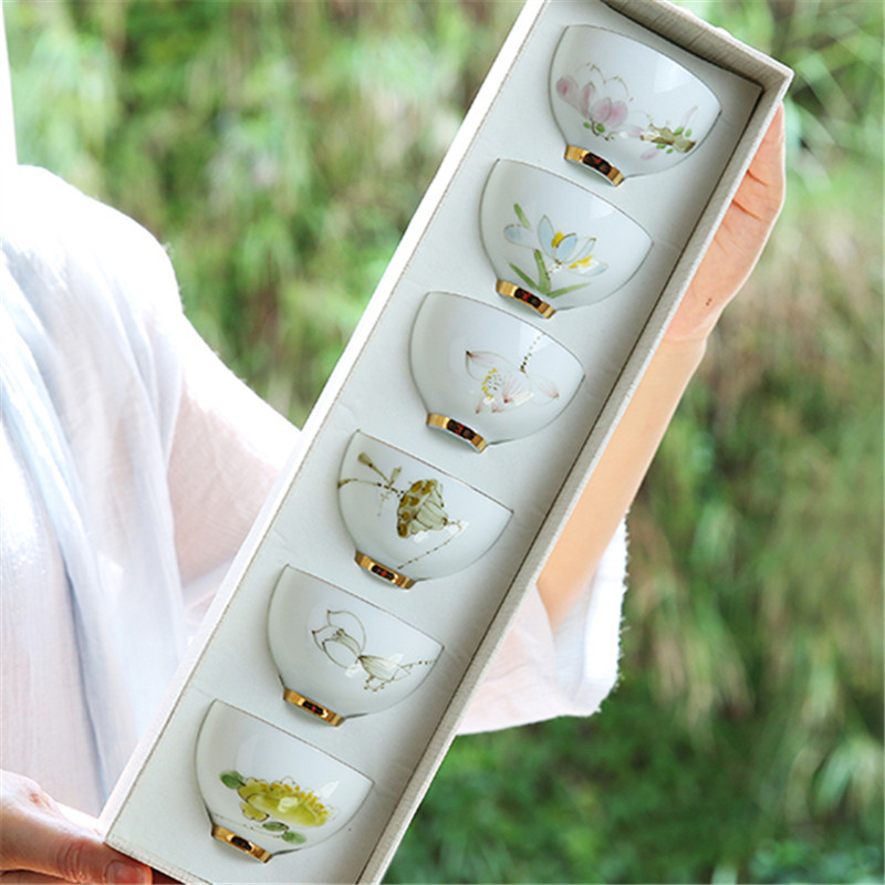手作り陶磁器カップ手描き品茗杯工夫茶器主人カップ小カップ6個セット家庭用個人カップ
