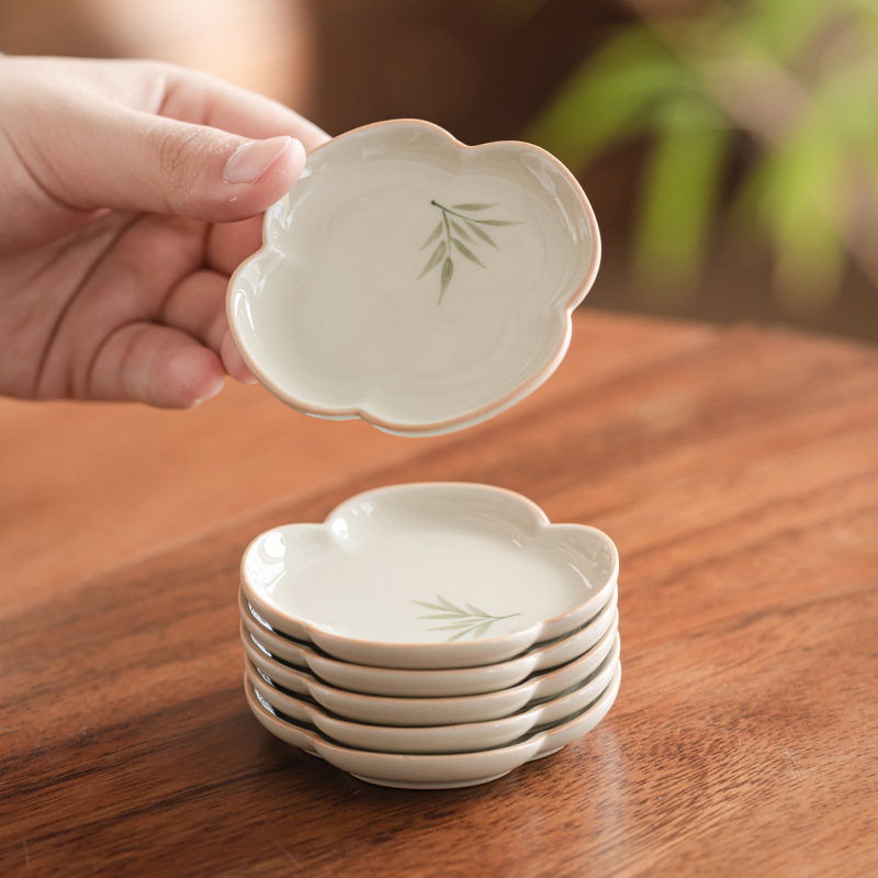 下絵手描き竹の葉茶コースター、セラミック茶コースター、火傷防止マット、断熱マット、シングルソーサー、茶道アクセサリー