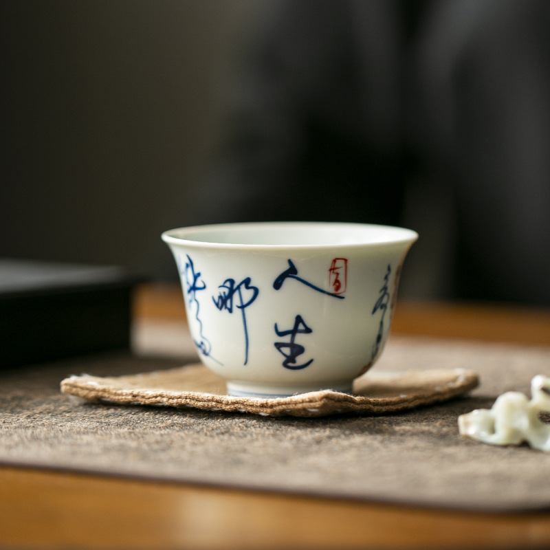 アンティーク手书きマスターカップ詩文カップ个人専用陶器品茗杯シングルカップカンフーティーカップ