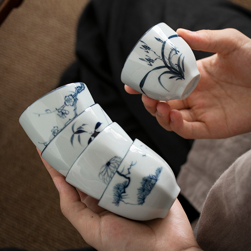 玖玖青花磁器手描き品茗杯模造古シングルカンフーカップ中国式陶磁器茶器主人杯小茶杯