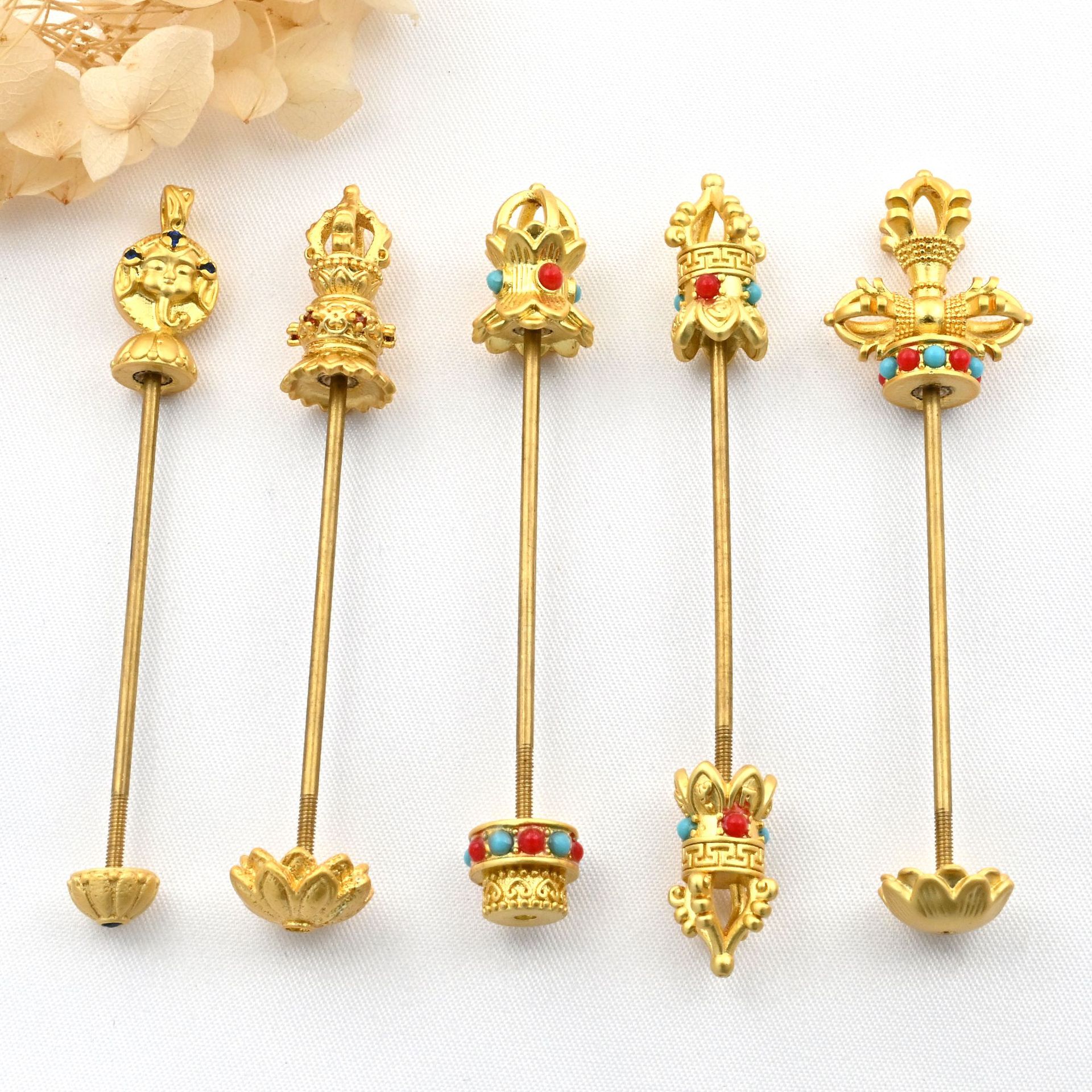 保色古法金天珠銅ボタンを縦に着てペンダントの空托部品の万能ボタンをひねることができます。