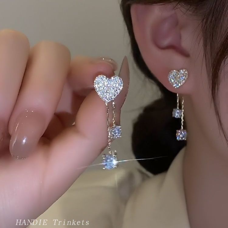 金色满钻爱心流苏耳环气质轻奢高级感前后戴耳饰精致时尚百搭耳钉