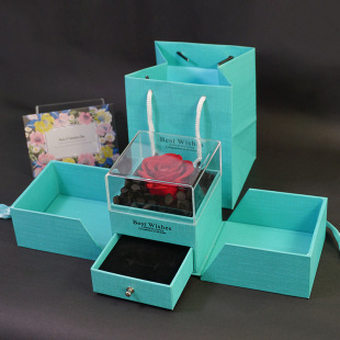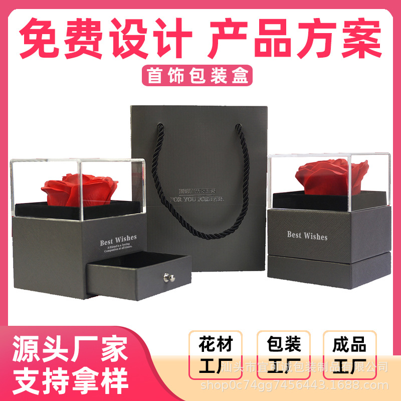 クロスボーダー永生花ギフトボックスバラのアクセサリー包装箱アクリル引き出し箱バレンタインデー高級感アクセサリー箱