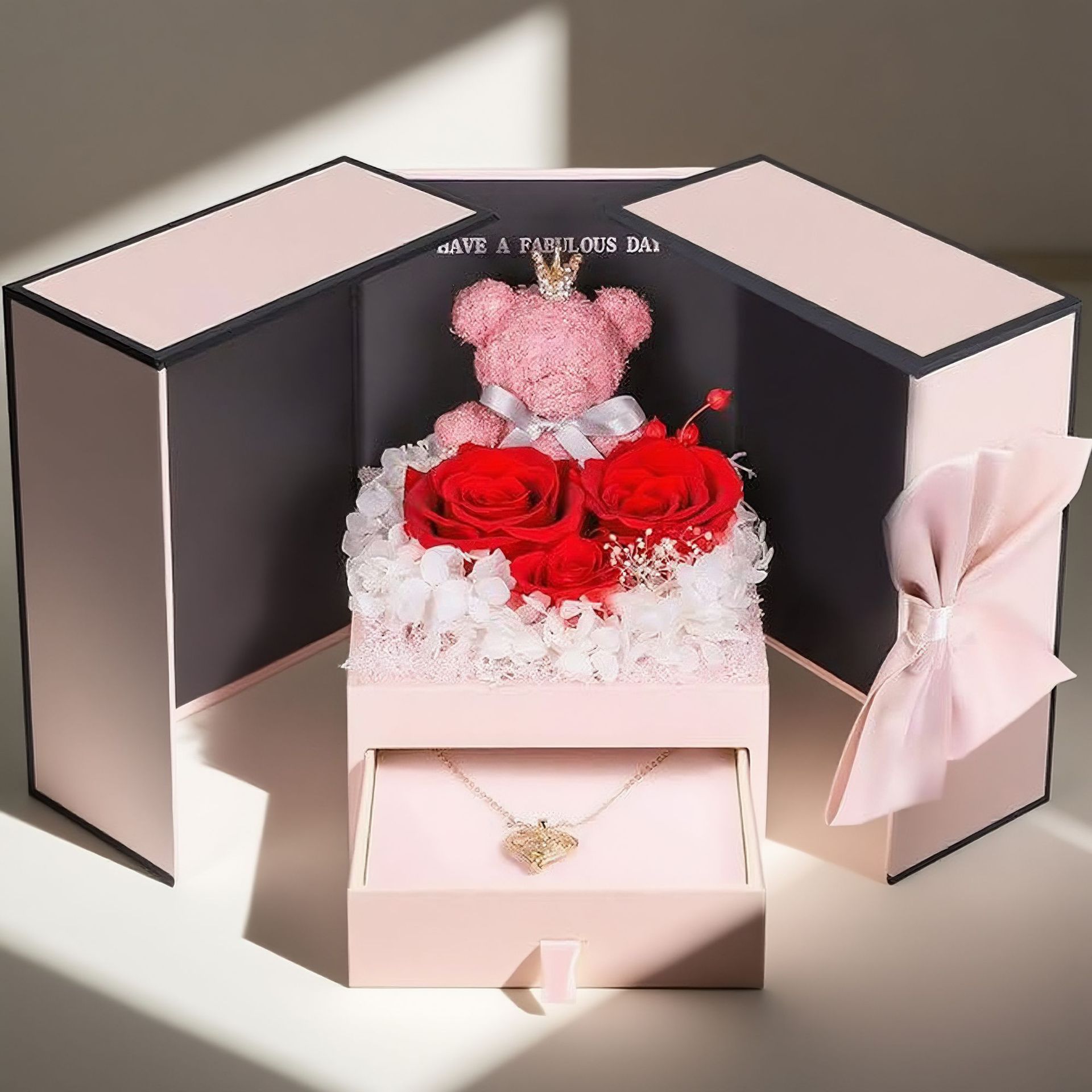 国境を越えて永遠の命の花礼箱熊双開扉クリスマスバレンタインデー礼箱飾り箱口紅礼箱