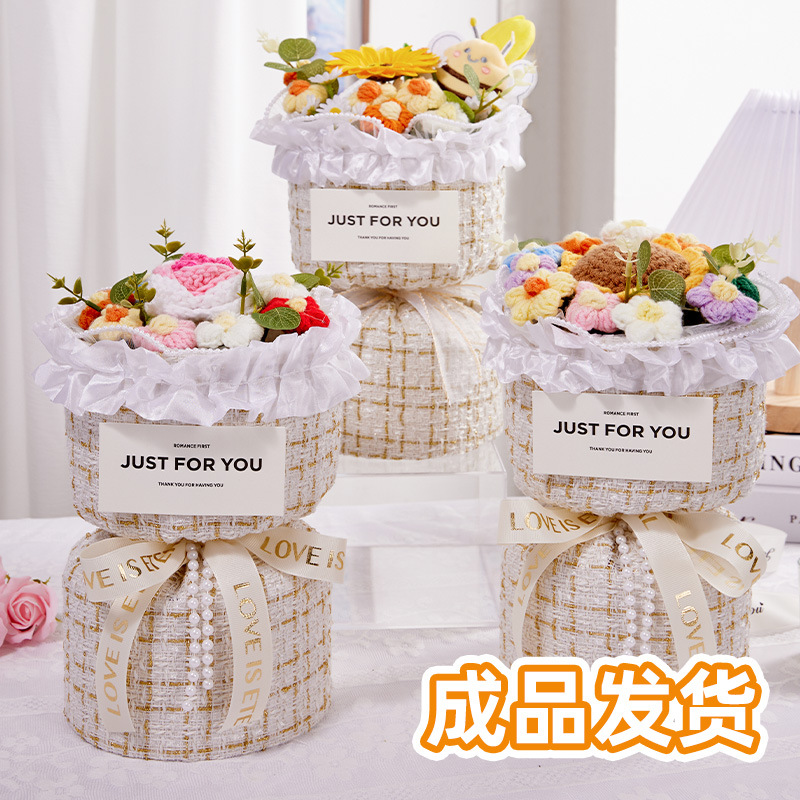 玫瑰针织花束编织香皂花成品小蜜蜂生日礼物女生礼物小香风花束