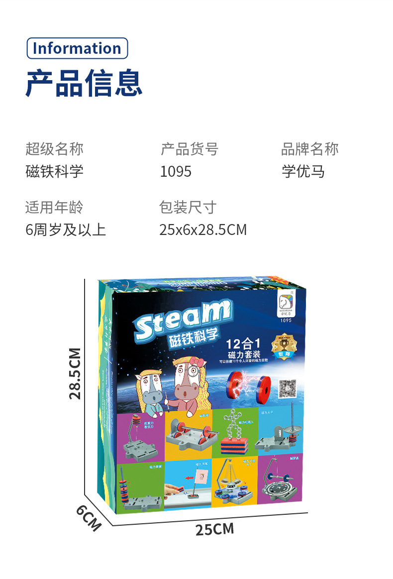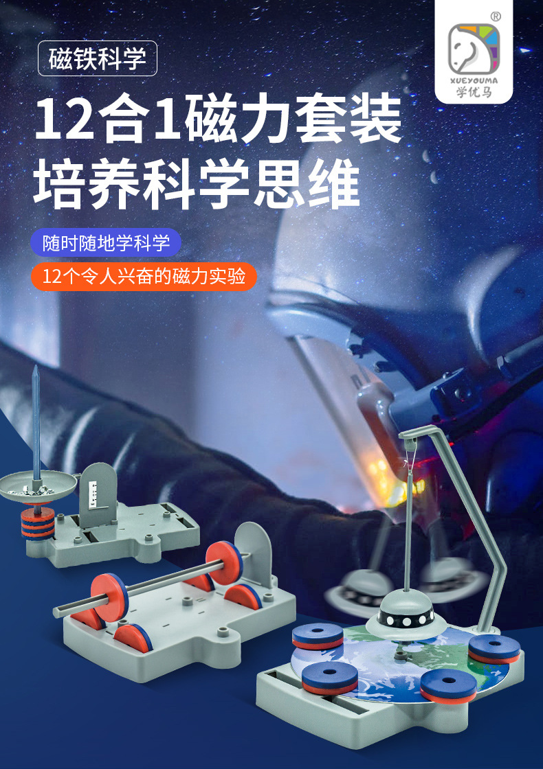 学優馬物理類12合1磁気科学実験セット 磁気浮上ボックス入りプラスチック玩具 知育玩具