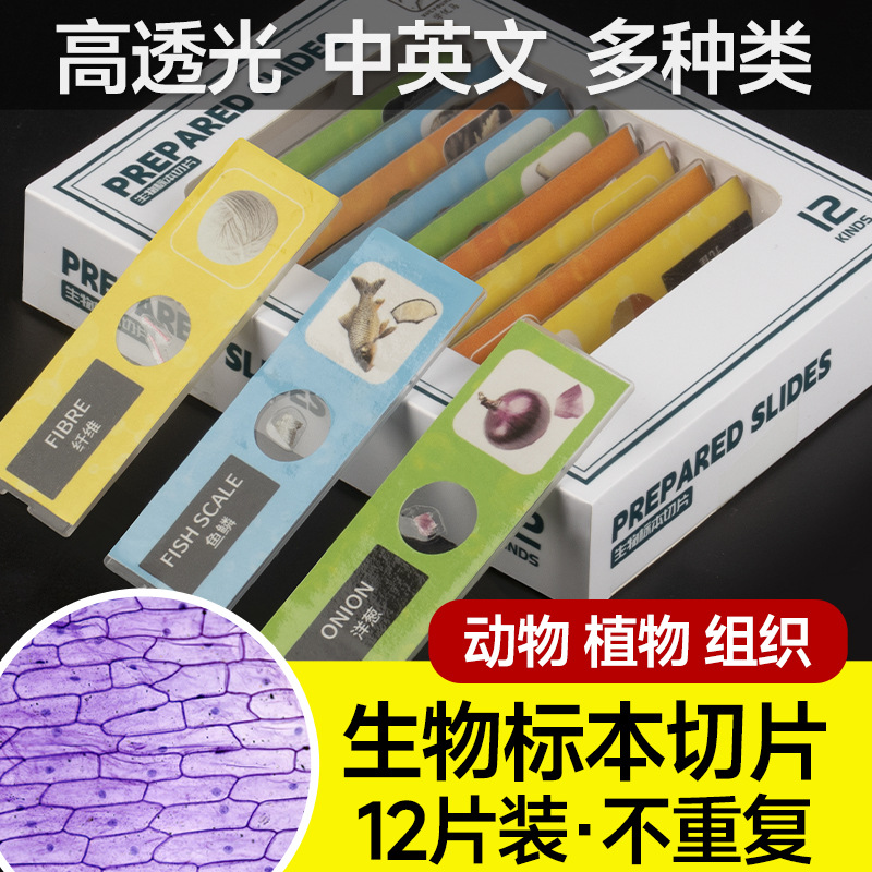 学優馬顕微鏡生物標本 赤黄青緑四色 子供用 自作プラスチック標本 12枚入り ボックス入り 手作り