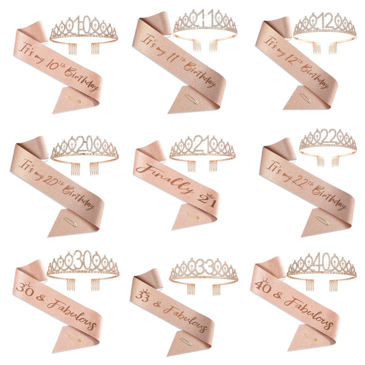Amazonクラウンセットパーティー用品子供肩ひもローズゴールド女の子ネギピンク诞生日ベルト诞生日プレゼント