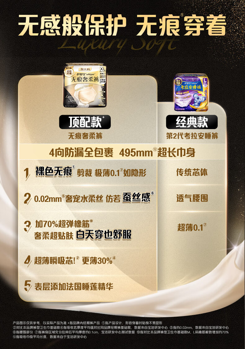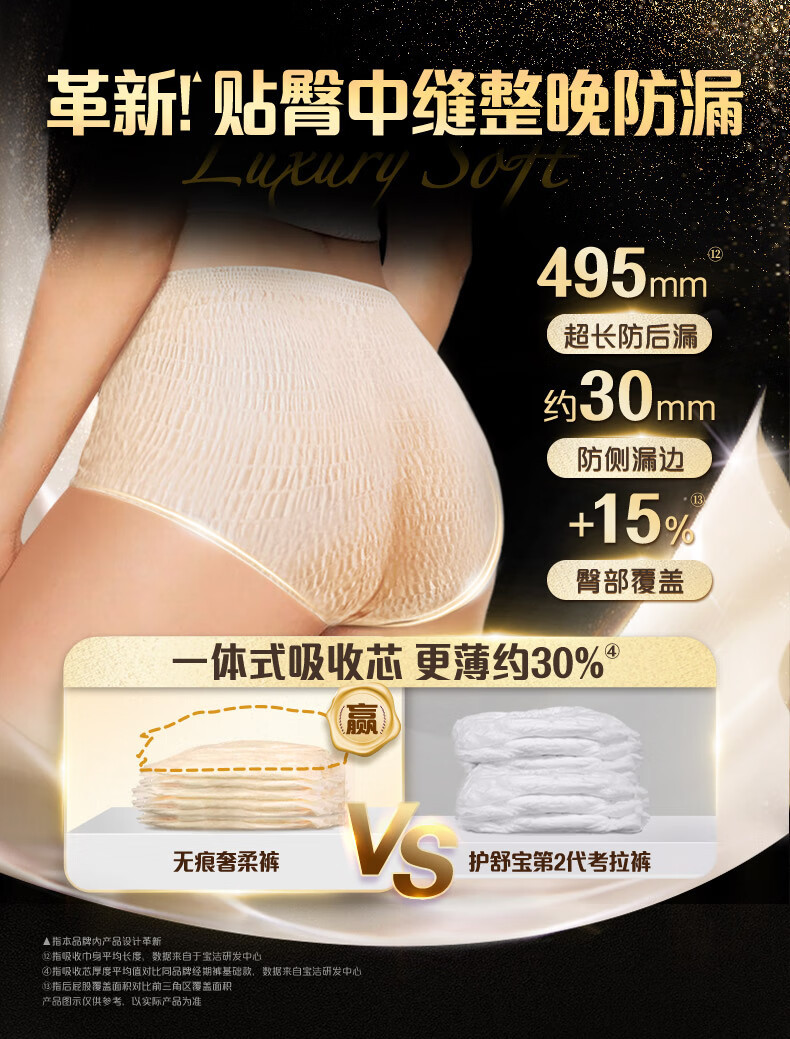 护舒宝奢柔考拉裤安睡裤型卫生巾早安裤女夜用姨妈巾M-L3片装无痕