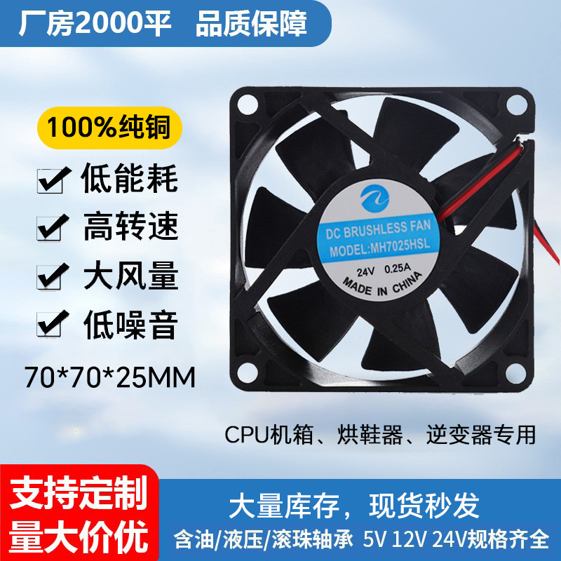 DC7025冷却ファン、ボールベアリングオイル入り、乾燥機、屋外照明、美容機器、静音産業用ファン、卸売