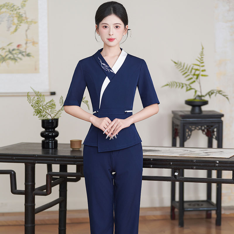 夏用高級美容院フットバス作業服フットセラピー健康マッサージSPA技術者服女性用セット中国風3583