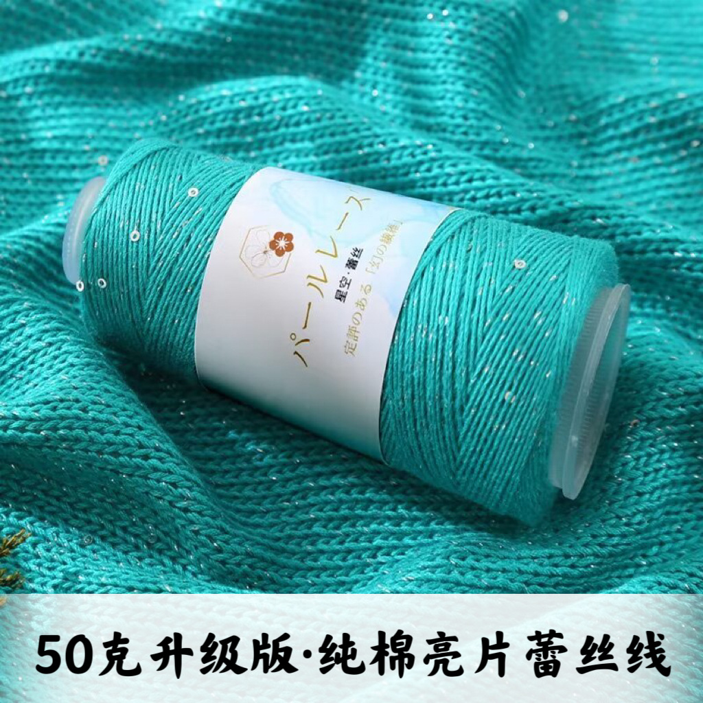 スパンコールレース糸シルクコットン手織り透かし編みシャツショールスカート純綿糸キラキラ糸レース毛糸団