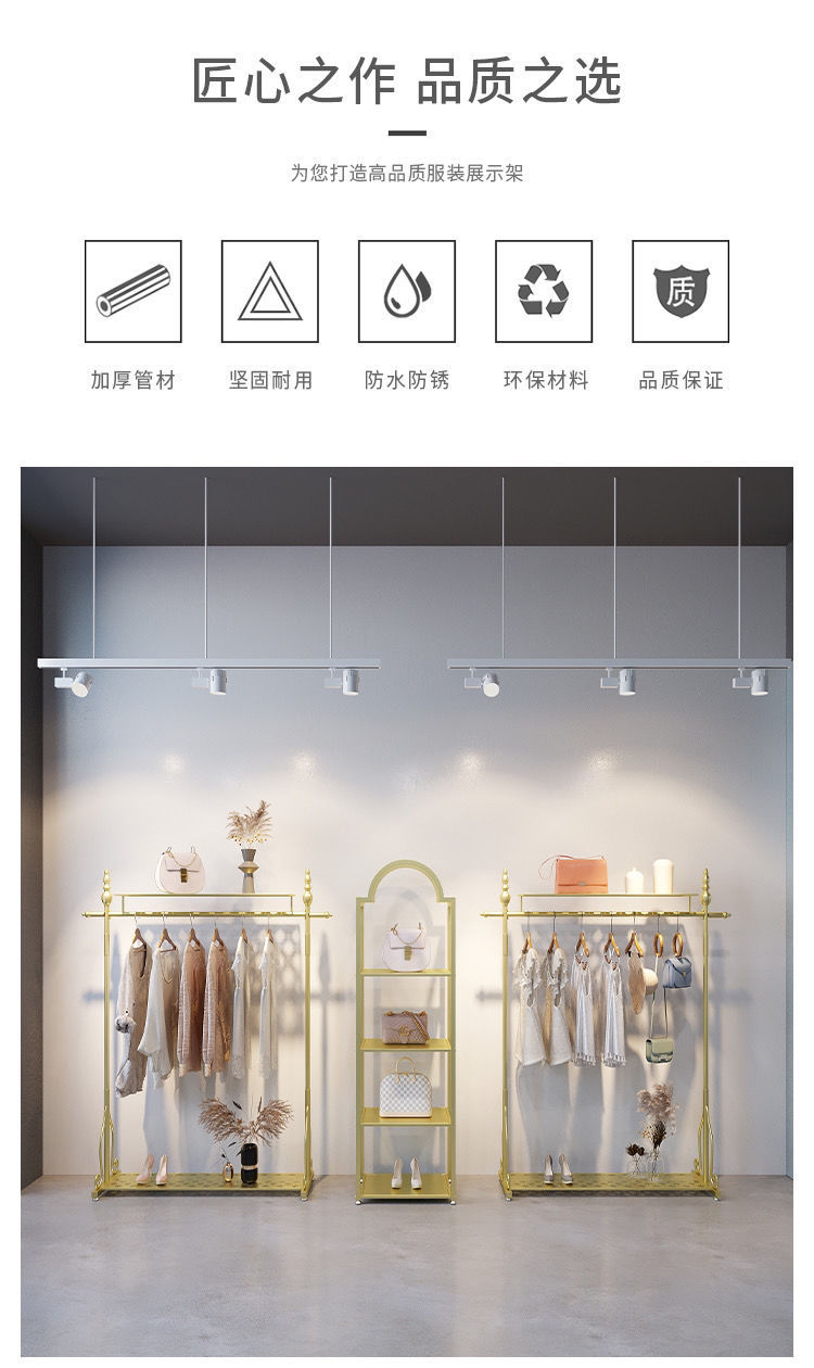 衣類ラック床置き衣料品店ディスプレイラック婦人服棚インターネットセレブ衣類ハンガーメーカー卸売ゴールデン衣類ディスプレイラック