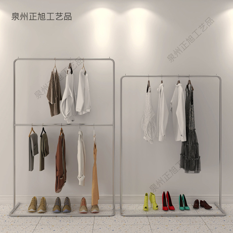 洋服店展示棚ステンレス製伸線銀床置き式ハンガー男性女装童装店シンプル専用棚