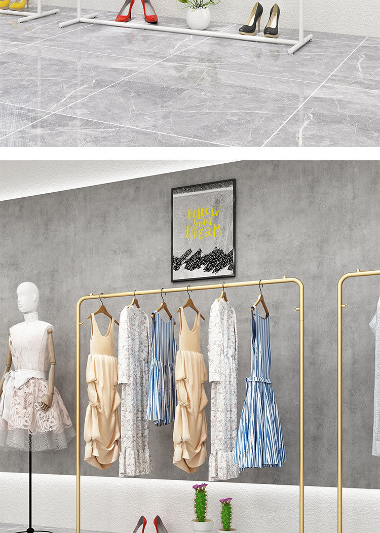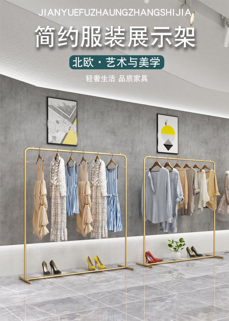 衣類ラック床置き衣料品店ディスプレイラック婦人服棚インターネットセレブ衣類ハンガーメーカー卸売ゴールデン衣類ディスプレイラック