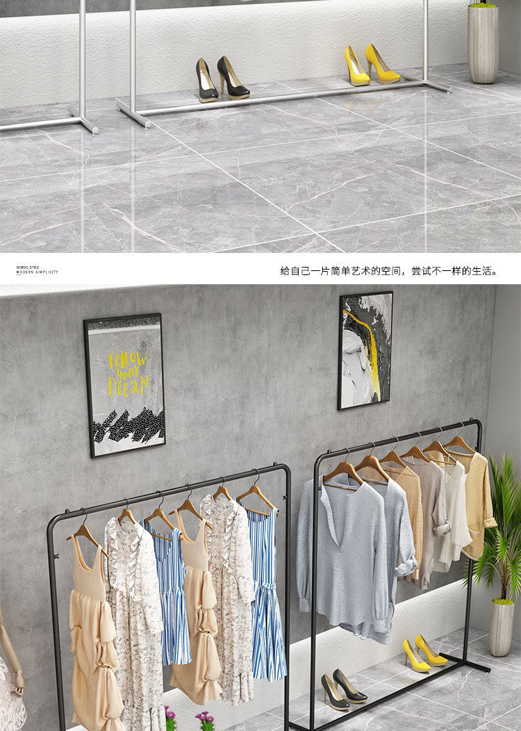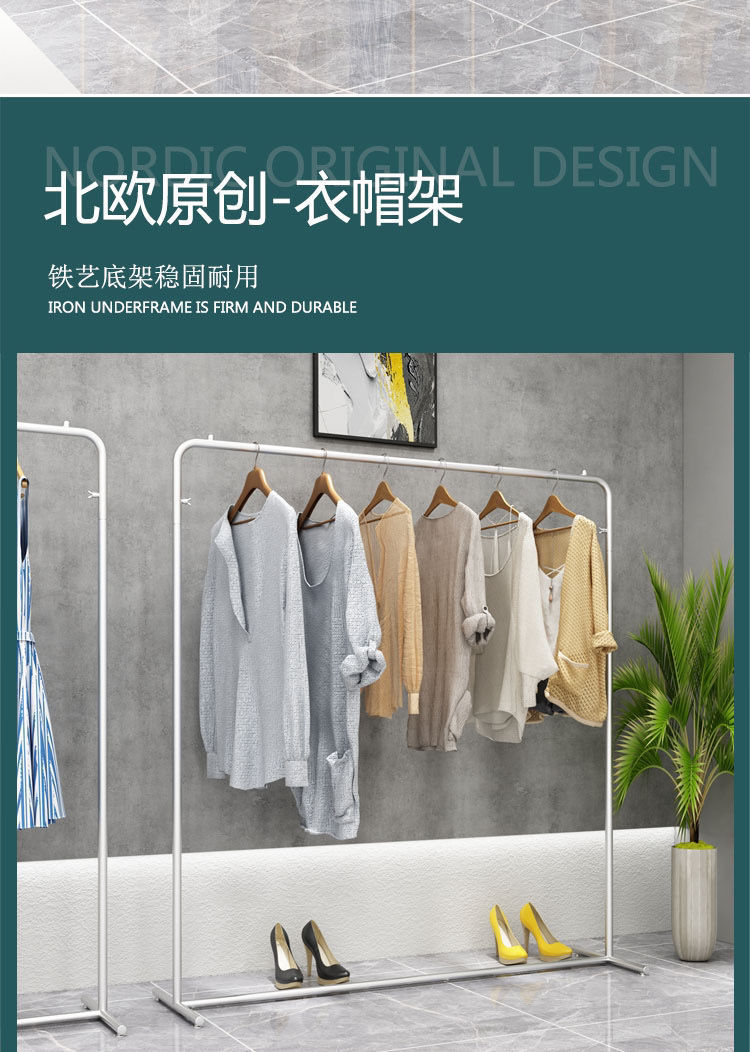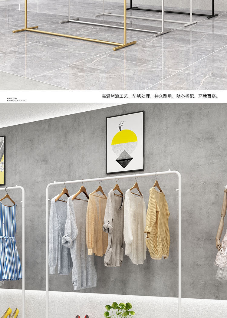 洋服店展示棚ハンガー専用床置き式装飾女装子供服物干しシングルロッド龍門棚