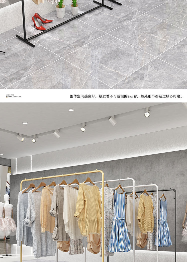 衣料品店のディスプレイラック床置きステンレス鋼シルバーシンプルなディスプレイラック婦人服中島棚子供服ハンガー