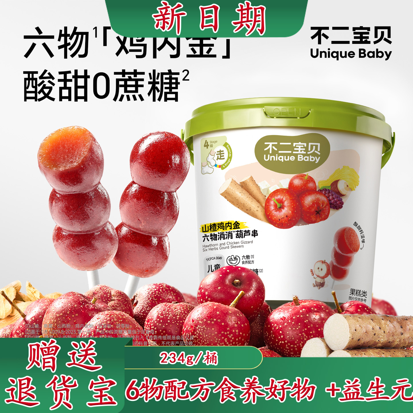 不二宝贝山楂六物葫芦串儿童鸡内金山楂棒宝宝水果条支持批采批发
