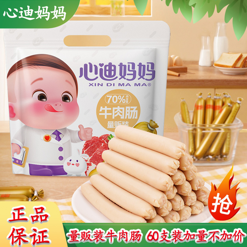 心迪ママの子供用牛肉ソーセージ、無添加香料、大容量パックのハムソーセージ