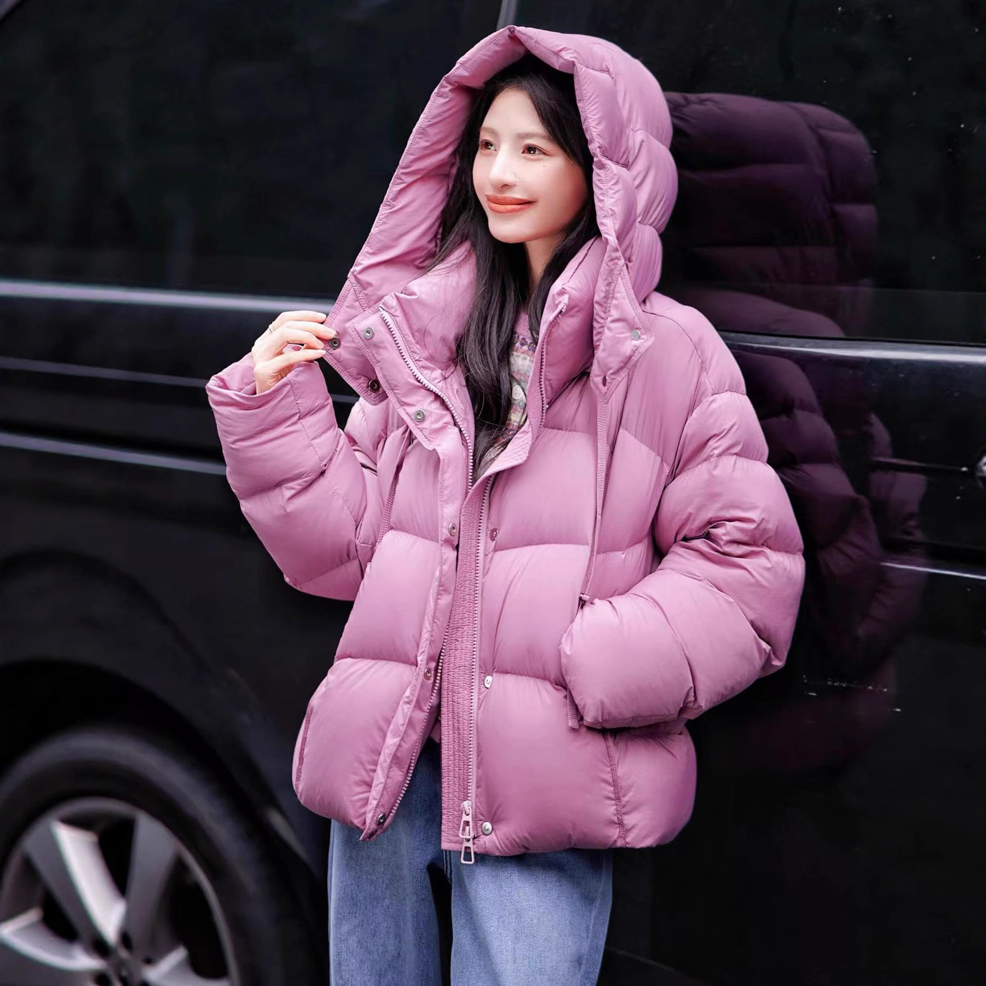 2025秋冬加厚高蓬松度羽绒服90白鹅绒加厚短款连帽羽绒服