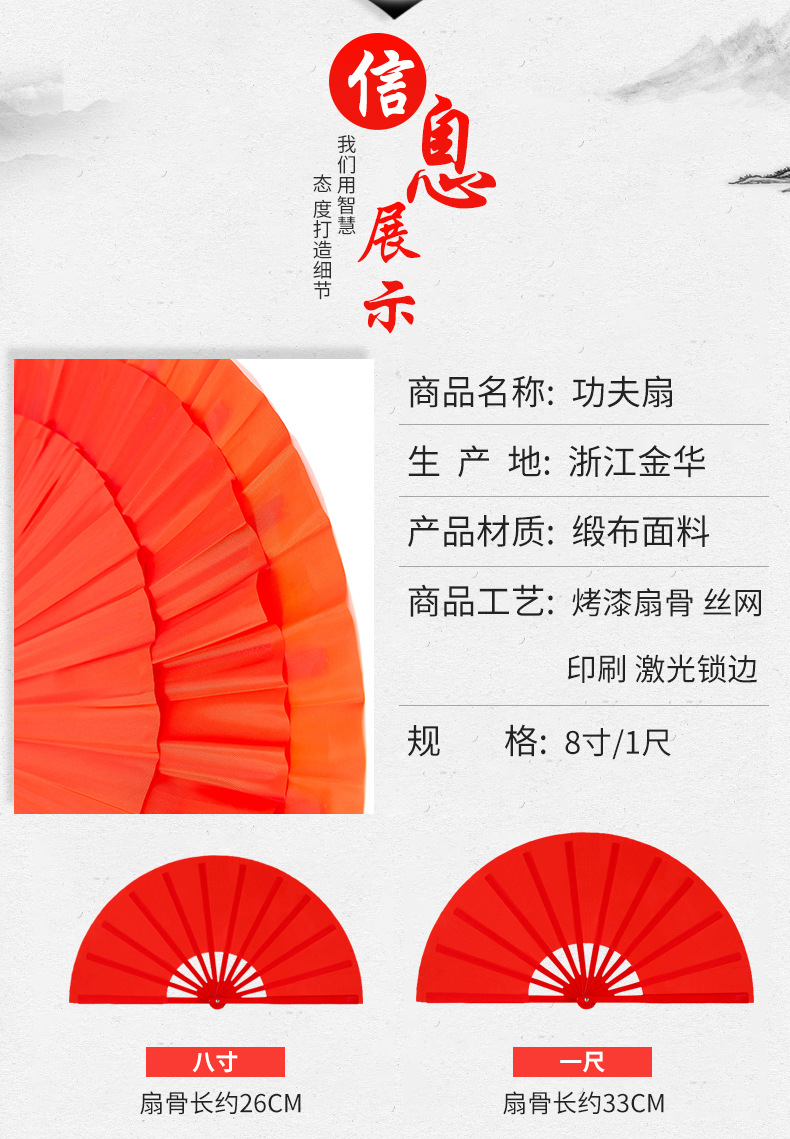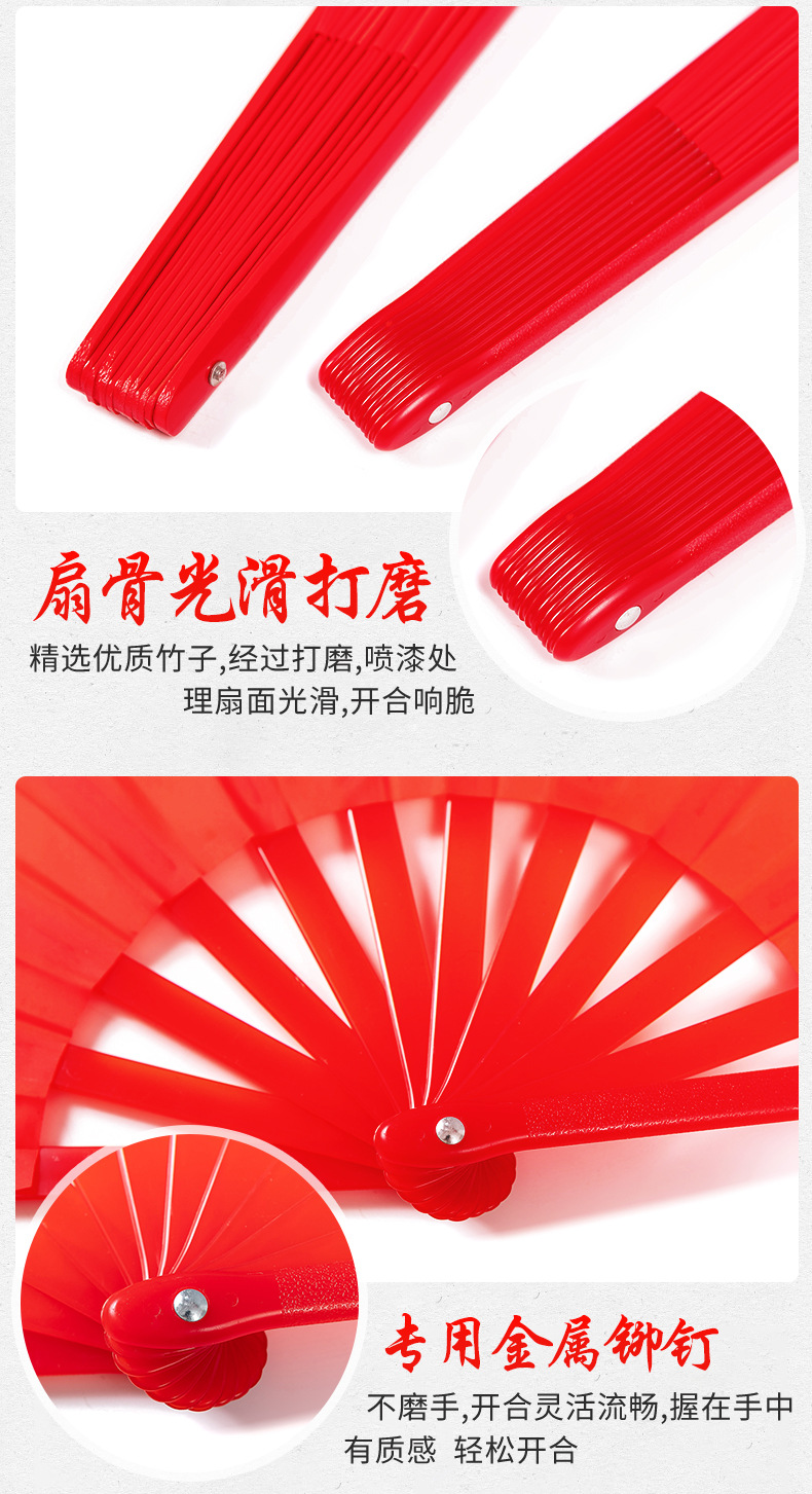 太極扇の工夫の音の扇子の赤い竹の骨のプラスチックの骨の中華の中国の武術は両面の子供のダンスの卸売りを演じます。