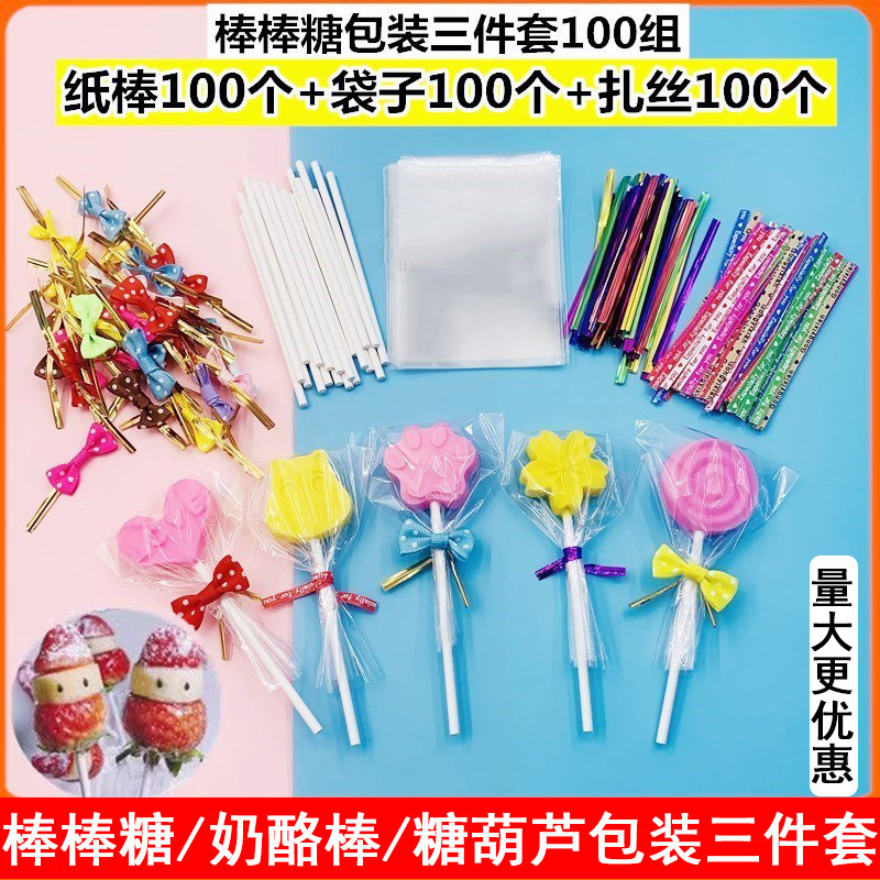環境保護紙棒結束opp透明袋アメ蝶結束手作りチーズ棒三点セット包装袋