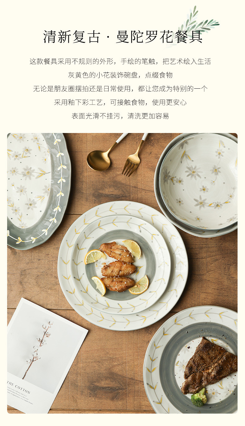 曼荼羅荷意皿料理皿家庭用卸売り茶碗スープ碗魚皿皿皿皿復古風食器