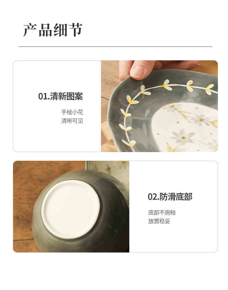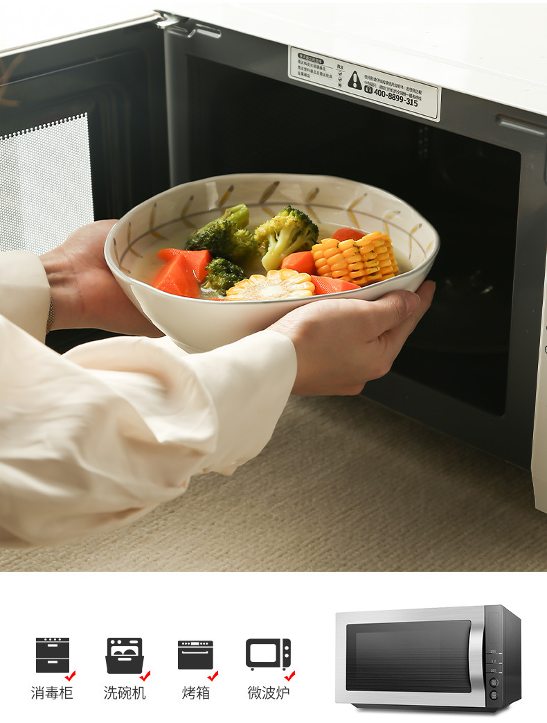 水墨風ハンドルボウル家庭用ネットレッドins風卸売り陶磁器オーブン付き専用泡ボウルサラダボウル茶碗茶碗