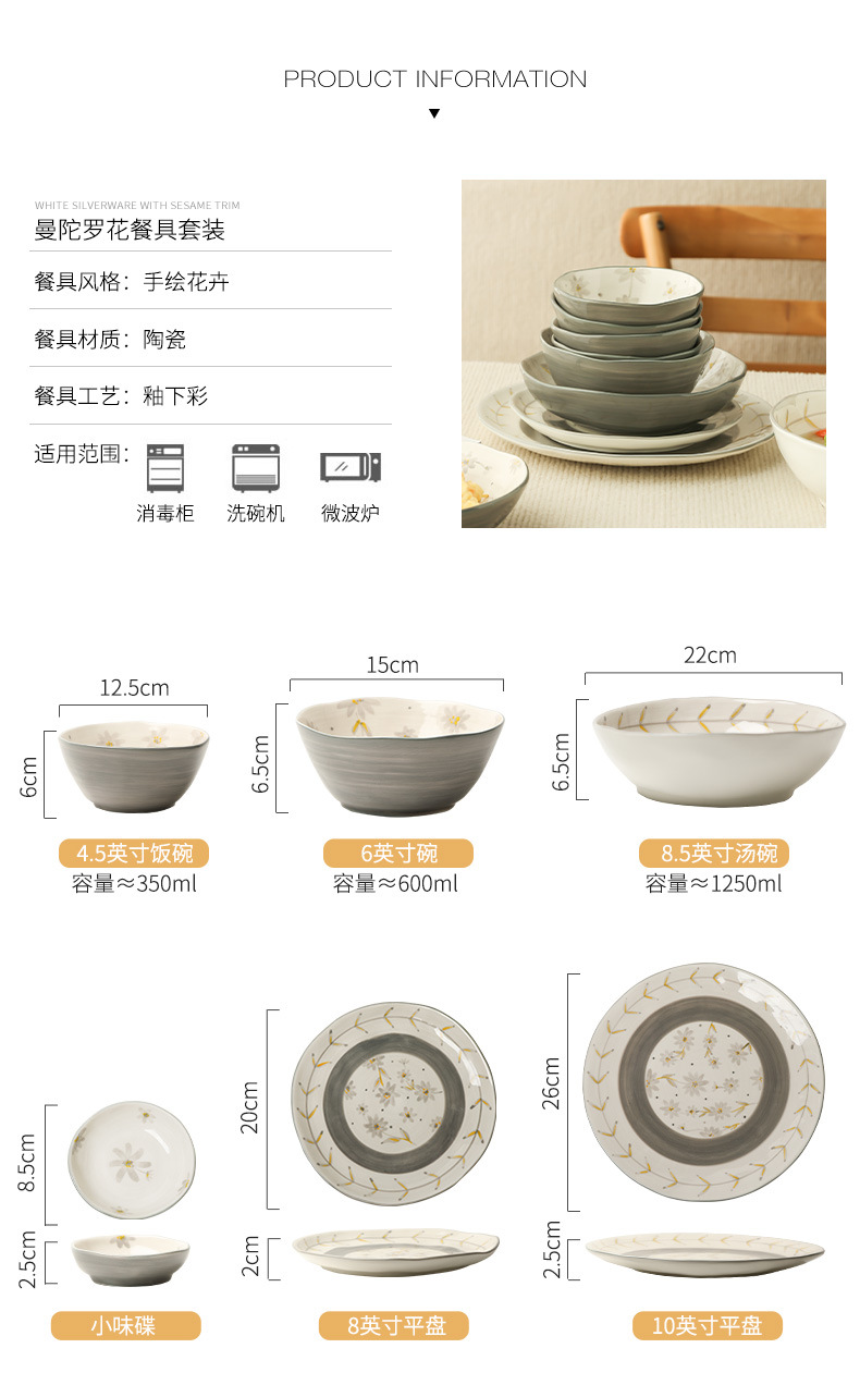 曼荼羅華碗皿陶磁器食器家庭用卸売り碗箸セットセットレトロ新居皿