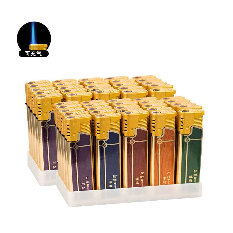 金博弘の新型のプルダウンは火をつけてまっすぐに青い炎を流すことができます。空気を入れることができます。防風ライターの色が鮮やかで、色あせにくいです。