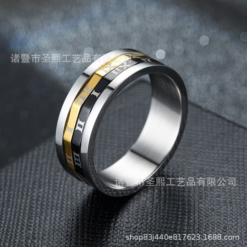 聖熙国境を越えた新製品男性ステンレスローマ回転指輪多角形回転指輪源メーカー
