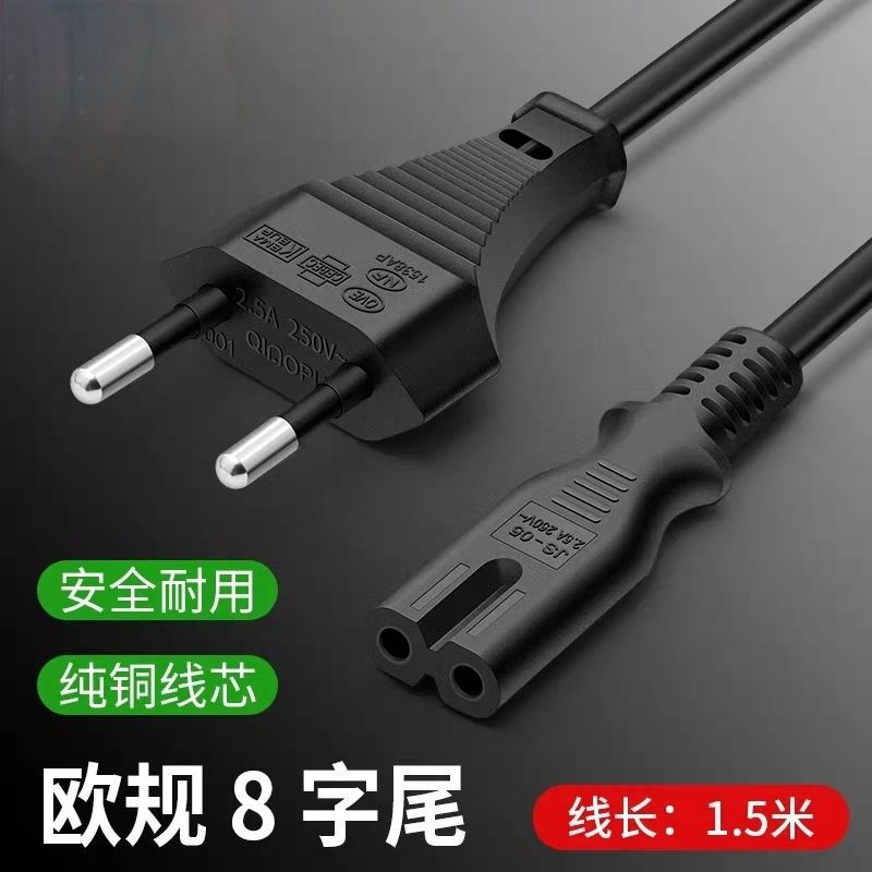 欧州標準 8 ワード テール、2 つの丸型プラグ コード、欧州標準アダプター電源コード、 1.5m