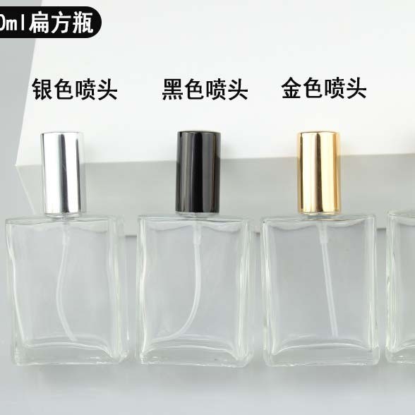 偏平な方の香水のスプレーの瓶の四角形のガラスの香水の分注の瓶の空の瓶の高級な30mlの香水の瓶の卸売り