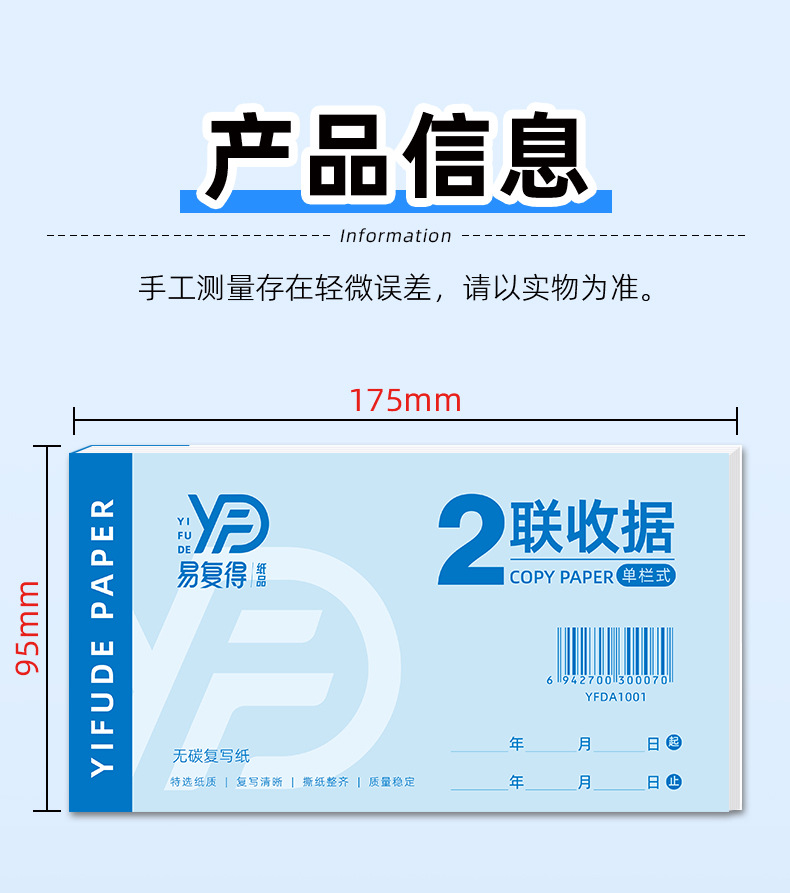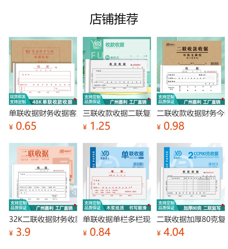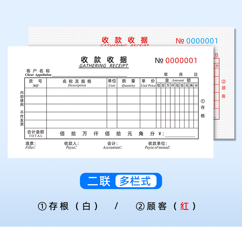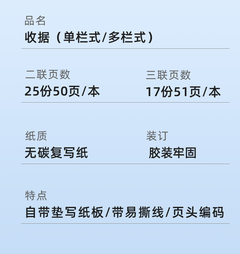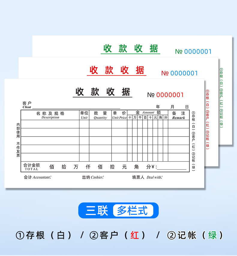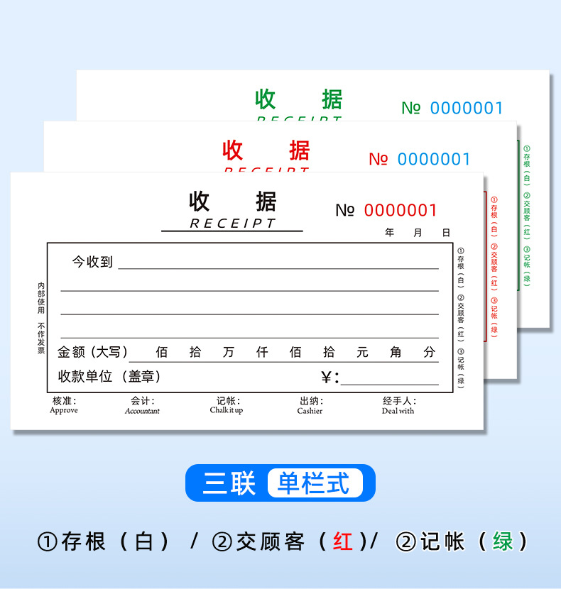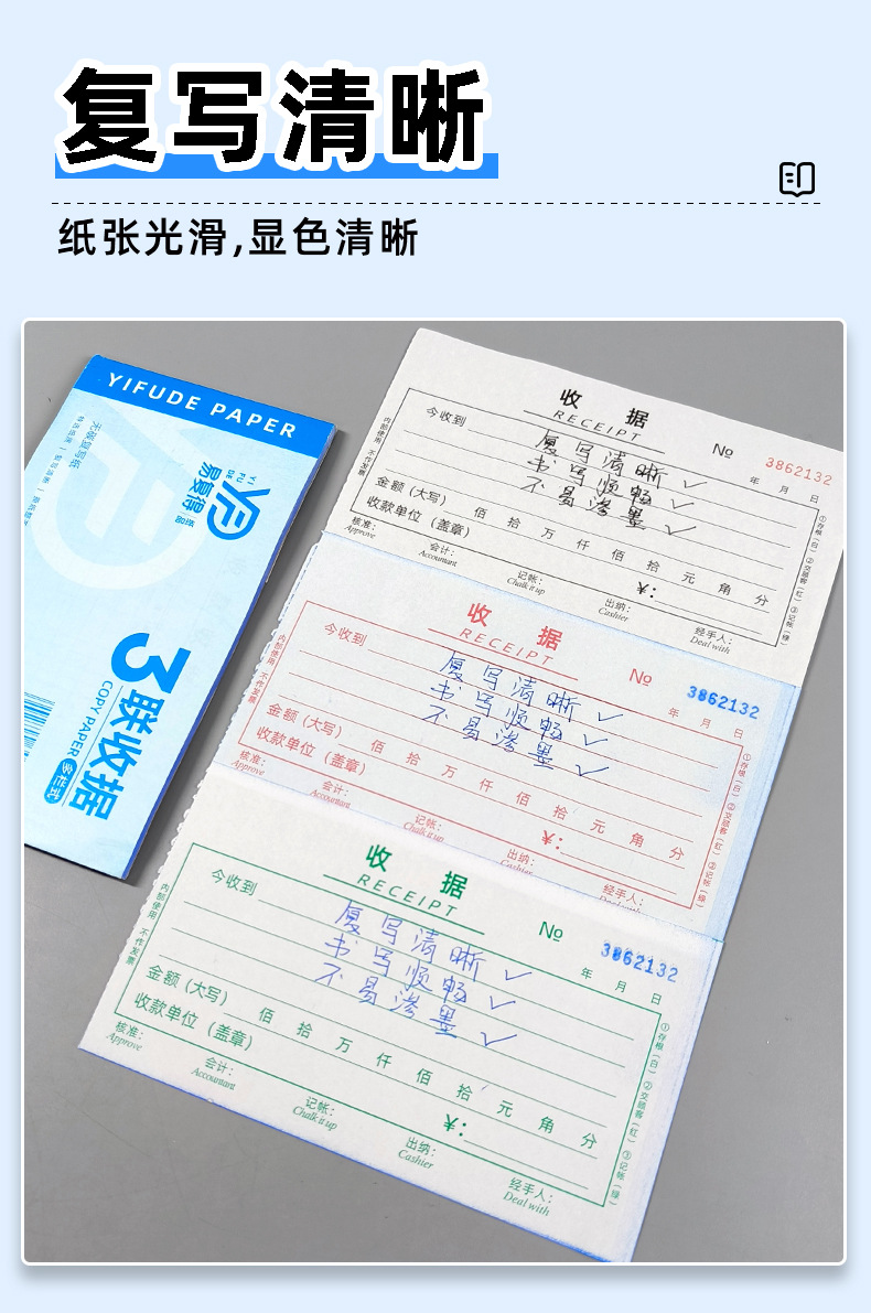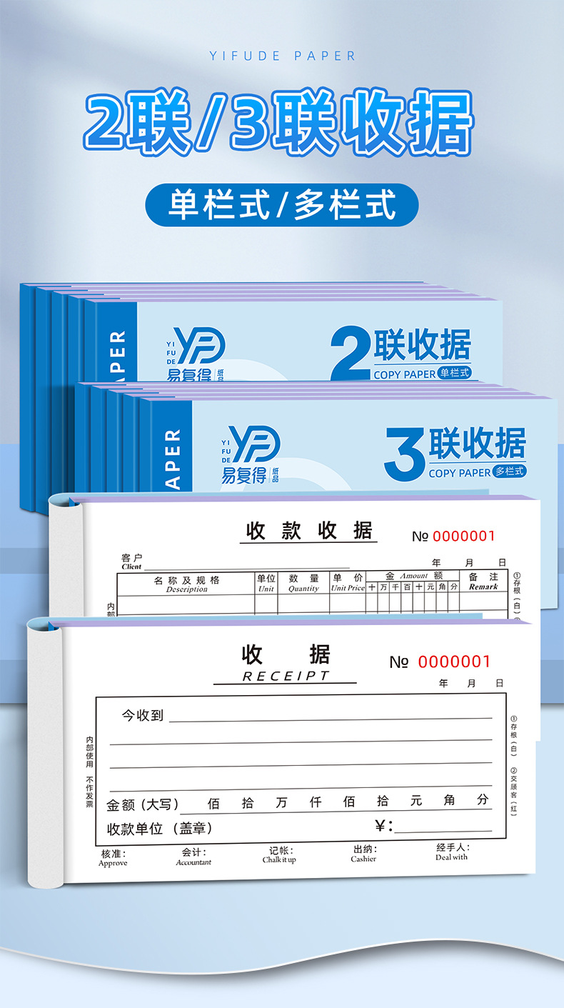 二連単欄領収書本三連多欄入金手形現金精算伝票無炭素複写紙メーカーがカスタマイズした