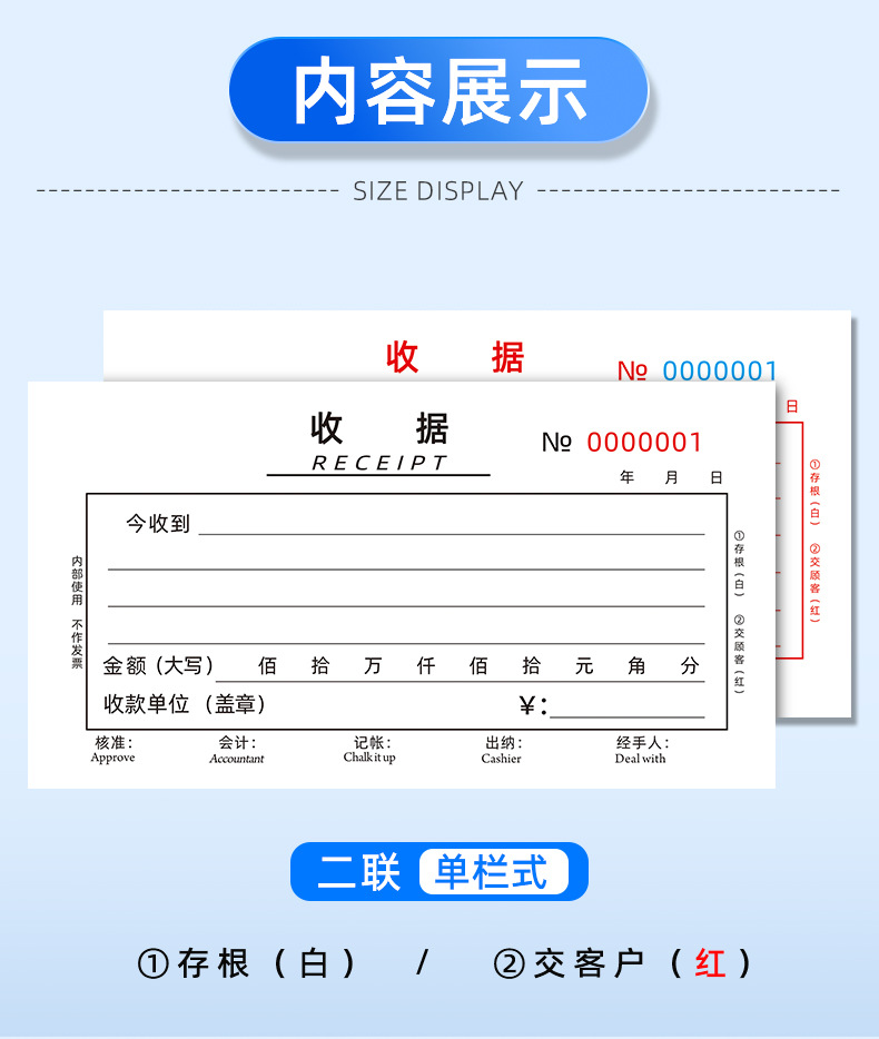 卸売り54K現金領収書2連無炭素複写板付き単欄多欄花付き今手形領収書を受け取った