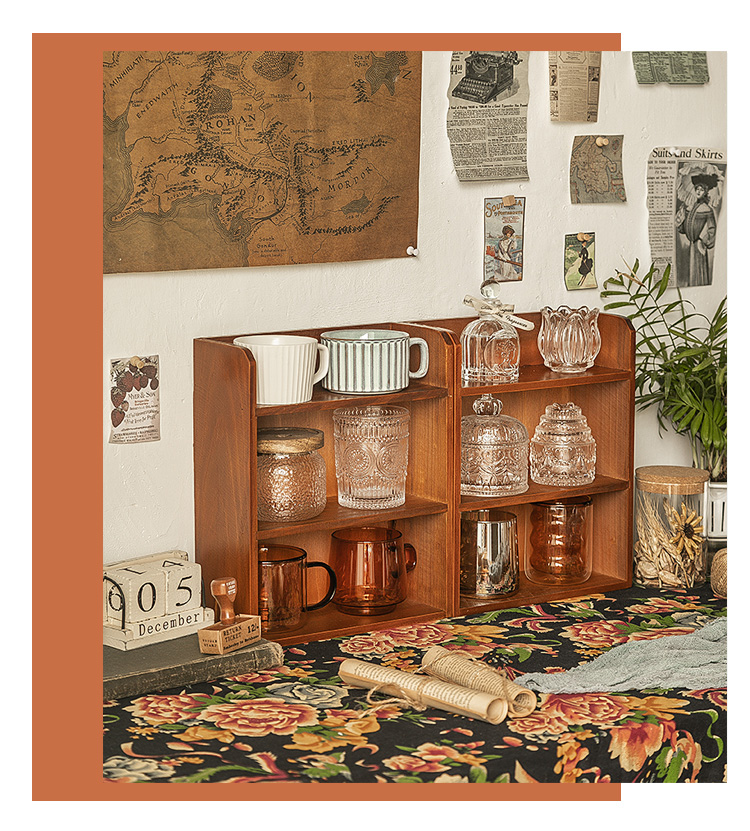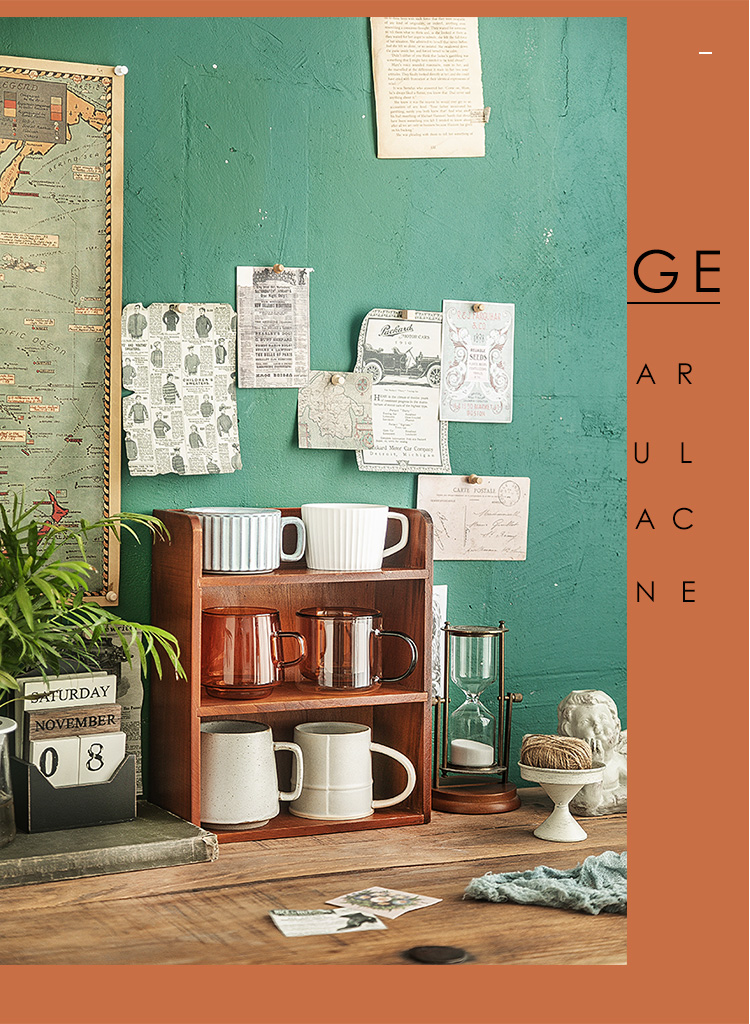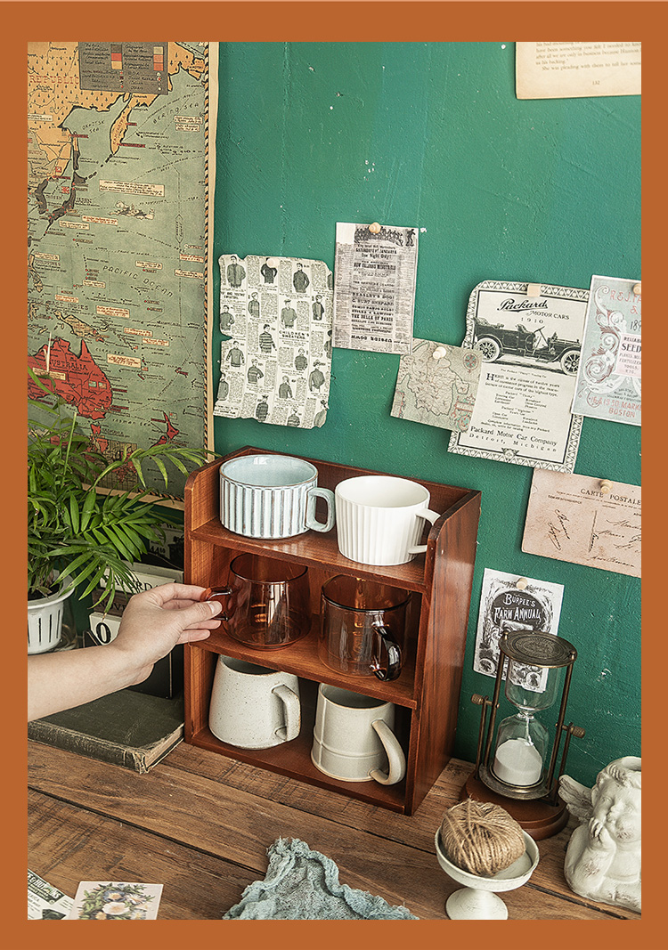 1p2rデスクトップ収納ボックスレトロ木製水カップ展示棚ティーカップマグカップキッチン実木カップ棚置き