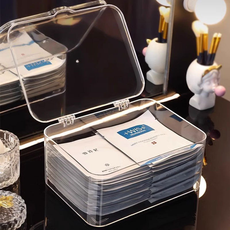 蓋付きマスク収納ボックス化粧品収納ボックスデスクトップスナック棚透明化粧台スキンケア用品置物