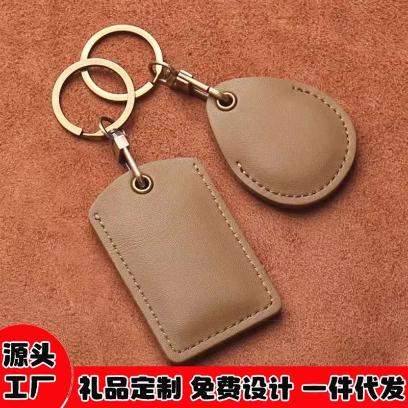 门禁卡套水滴形真皮小长方形门卡钥匙扣链一体小区电梯卡保护套