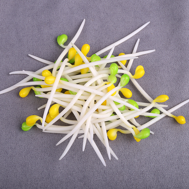 シミュレーションの野菜の道具はシミュレーションのもやしの付け合わせの道具の若芽の模型の偽の果物と野菜の料理の皿の部品を並べます。